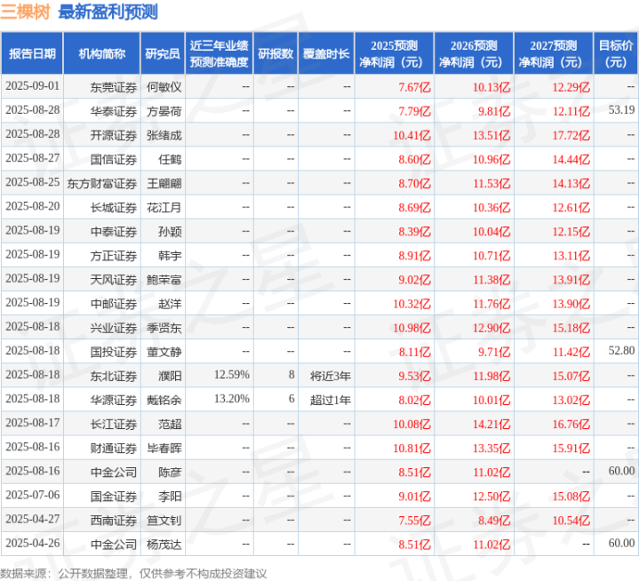 我们看好三棵树在新成长阶段,盈利能力更加稳定,新业态保持高成长。基于对“马上住”全国推广节奏、利润率修复等方面更乐观的判断,我们上调公司2025-2026年归母净利润预测分别为10.0、14.0亿元(原为9.0、12.5亿元),当前股价对应PE为34.6、24.7倍,维持“买入”评级。